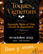 Vendredi 10 octobre : soirée Toques & Vignerons à la Salle Bartissol (accords mets et vins).